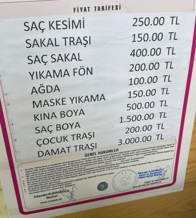 2025 YILI ERKEK KUAFÖR FIYAT TARIFESİ BELLİ OLDU